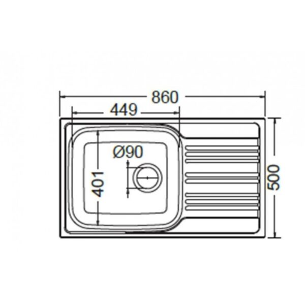 Διαθέτει μια μεγάλη γούρνα, που διευκολύνει το πλύσιμο μεγάλων σκευών, όπως για παράδειγμα ταψιά. Παράλληλα, έχει μια μικρή ποδιά αποστράγγισης με ειδικές γραμμές που οδηγούν το νερό της επιφάνειας μέσα στη γούρνα, ώστε να ακουμπάτε μερικά πλυμένα αντικείμενα και να στεγνώνουν.